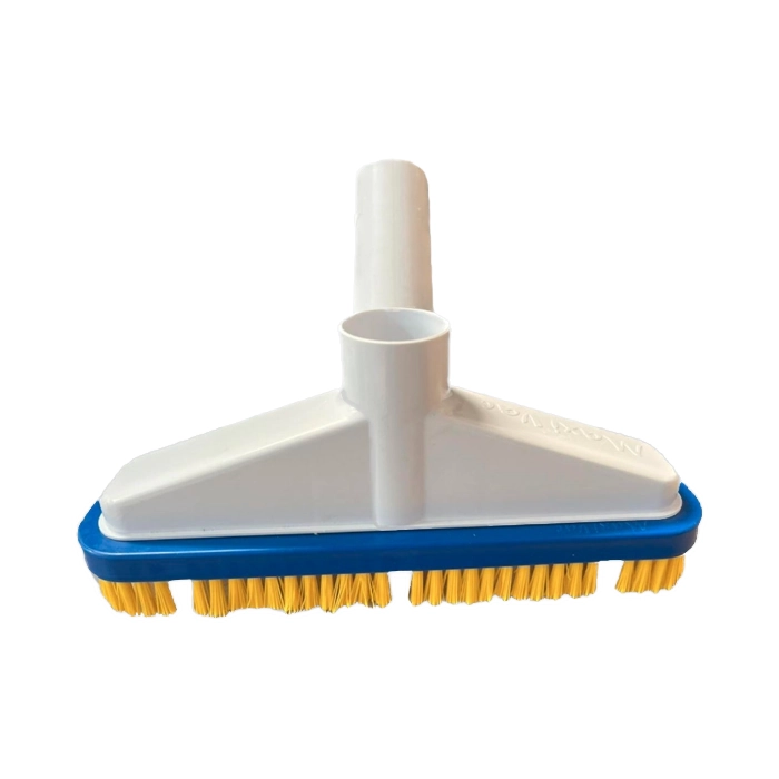 The Aqua Max Maxi Vac is a combination vacuum head and brush for manual pool cleaning. Connect it to your telescopic pole and vacuum hose to brush and vacuum the pool floor and walls in one pass. The brush bristles loosen dirt and algae while the vacuum suction removes it. Connects to a standard vacuum hose via the hose fitting on the brush head.